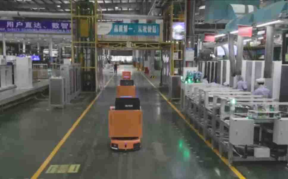 为车载冰箱物流配送打造的智能解决方案,,,,包含产中物流通过潜伏举升AMR搬运至线边,,,产后成品物流智能仓储,,流程包含产中物流智能齐套入库,,,,线边安灯叫料AMR智能配送至线边,,,成品入库、、出库,,,,通过无人堆高车机器人,,,,智能仓储管理替代人工作业管理,,,实现更高存储、、、更高效率、、、更具柔性化的解决方案。。。
